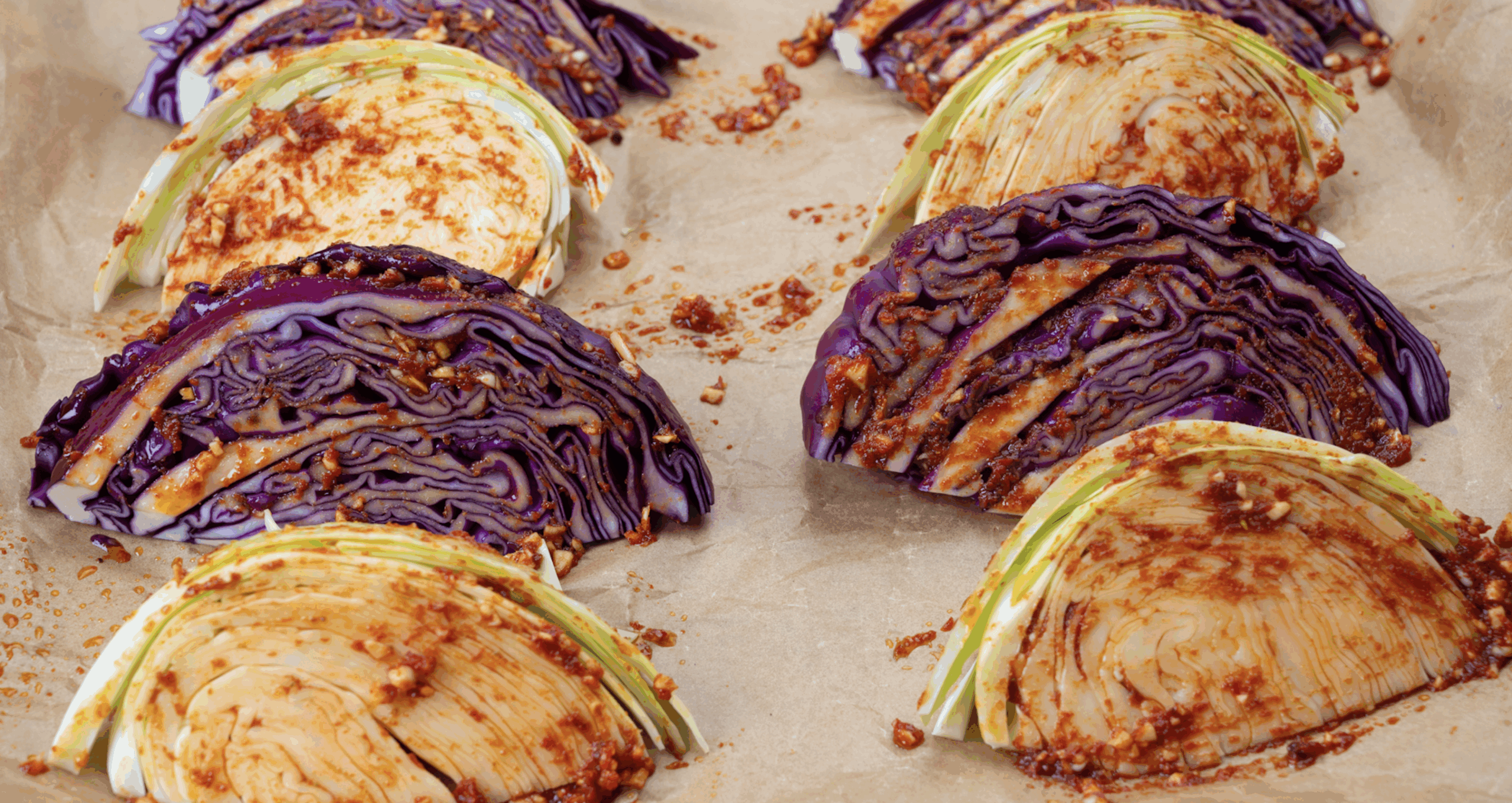 - Tomatenmark, Olivenöl, Cumin und Salz dazugeben, gut verrühren und den Kohl damit bestreichen